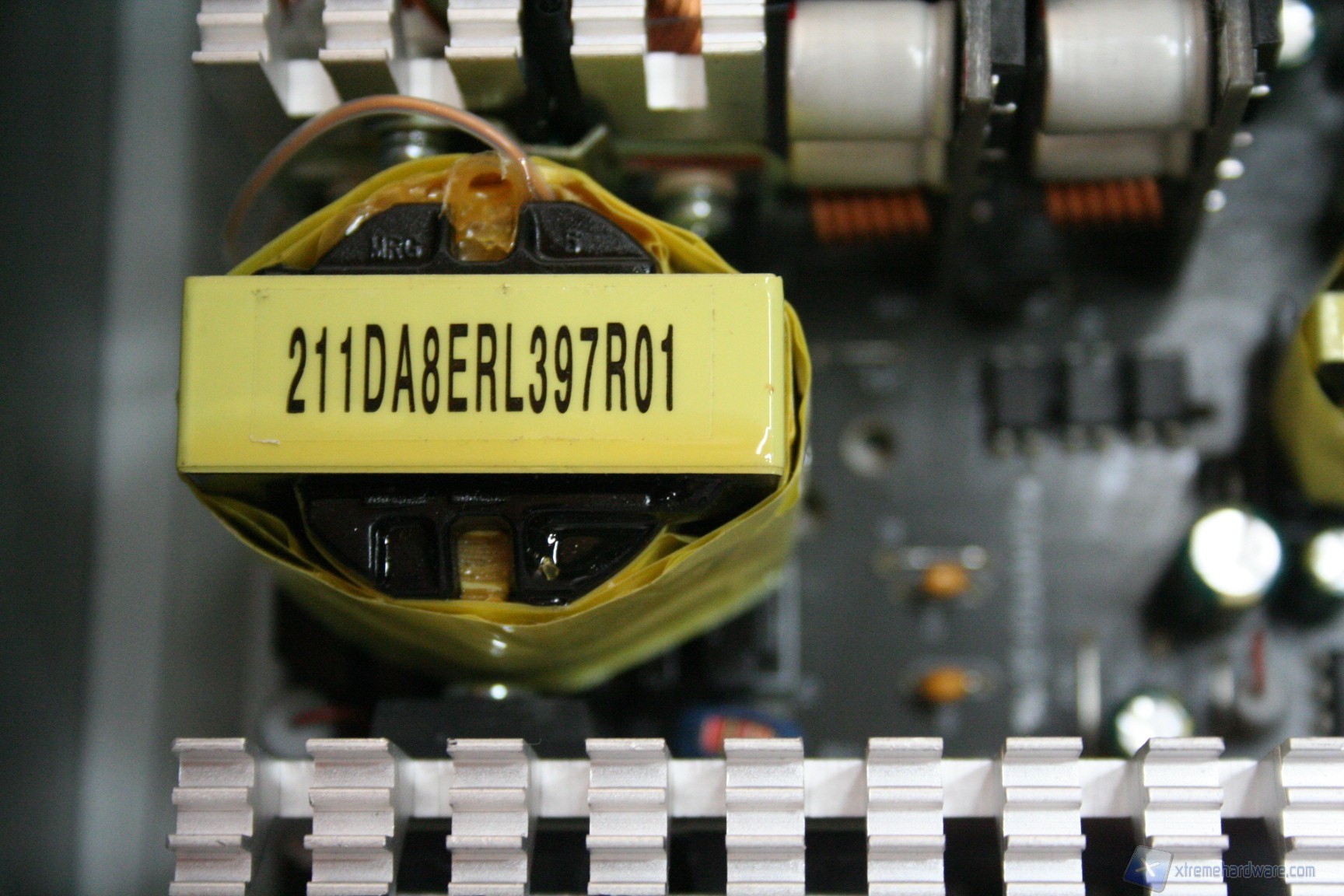 Nel primario è presente un solo condensatore elettrolitico Teapo, non giapponese quindi, avente le seguenti caratteristiche: 400V, 390μF, 85°C, similmente a quanto trovato in modelli dal simile wattaggio. I condensatori del circuito primario agiscono come buffer e sono molto importanti perché la loro presenza aiuta a proteggere il nostro alimentatore ed il computer stesso da pericolosi sbalzi di tensione, e generalmente vengono collegati in parallelo al fine di sommare le singole capacità, o alternativamente – per modelli meno potenti – vengono utilizzati singoli condensatori aventi anche 390μF, come in questo caso. Ci saremmo aspettati una tipologia migliore, d’altra parte, però, la topologia two-transistor forward è buona e permette risultati degni di alimentatori per sistemi di fascia alta.