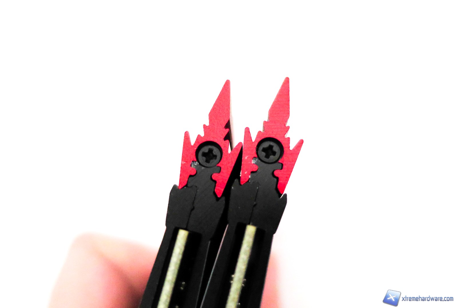 Come vi abbiamo accennato poc’anzi, le TridentX hanno anche la particolarità di poter essere smontate in parte, rimuovendo gli heatsink tramite due piccole viti con relativa rondella poste agli estremi superiori. Inoltre dalle immagini a seguire potremo notare anche la forma particolare di tali heatsink nonché la struttura.
