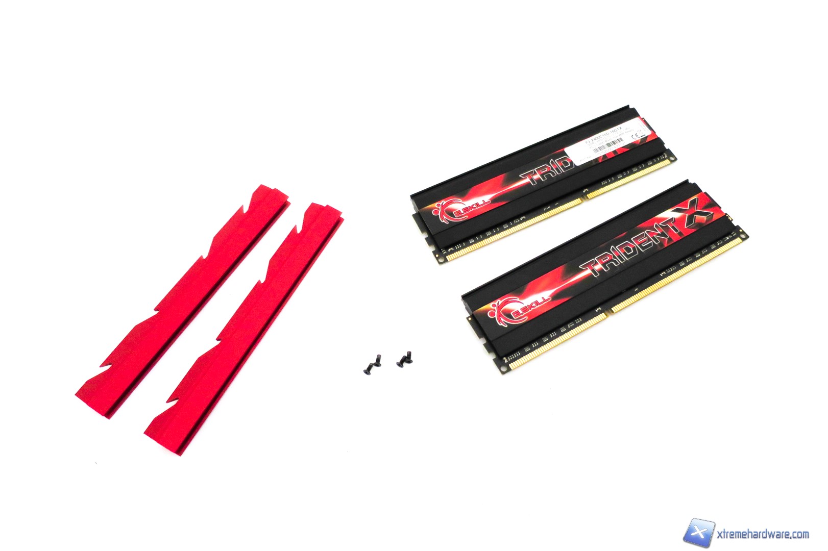 A differenza di altri kit di RAM il packaging di G.Skill non presenta sigilli di sicurezza quindi ci basterà aprire il blister ed estrarre le memorie insieme al relativo bundle. Il bundle delle G.Skill TridentX si compone semplicemente di: