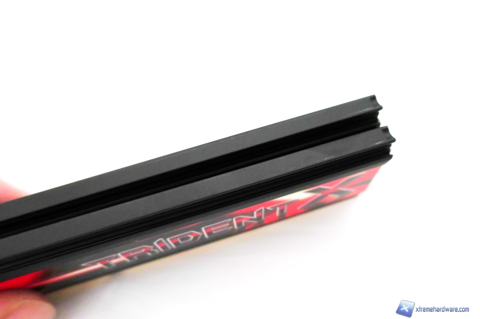 Rimosse le viti in ambo i lati, ci basterà sfilare l’heatsink o verso destra o verso sinistra e poter così dare un nuovo look alle nostre TridentX. Da notare il “binario” su cui scorrono gli heatsink, che ricordiamo essere in alluminio come per il restante corpo dei moduli di memoria.